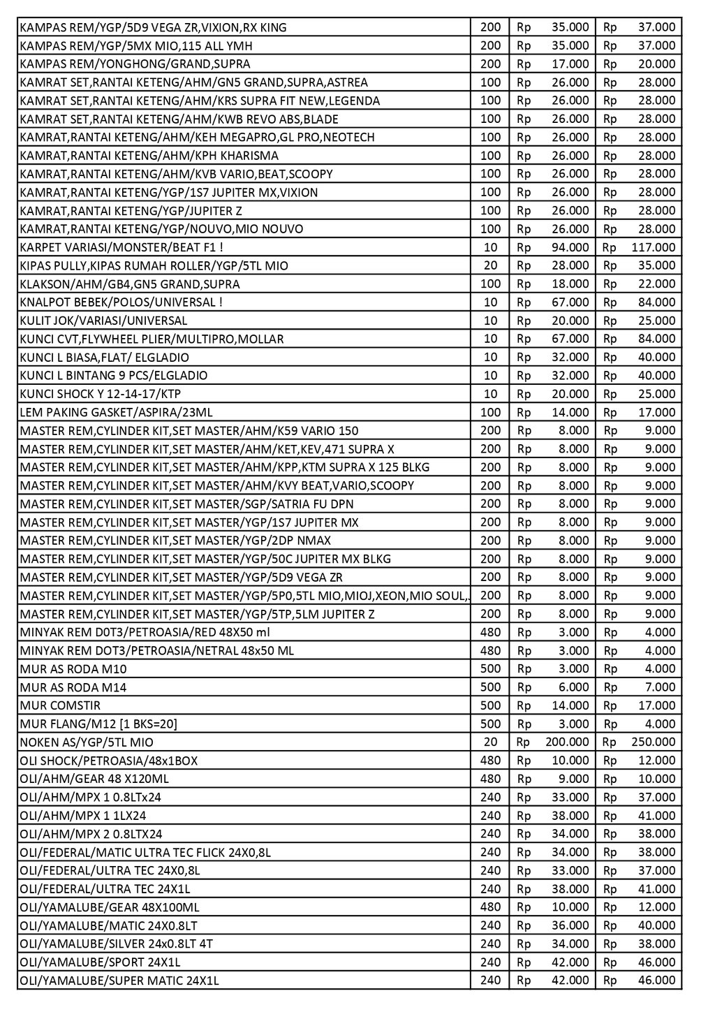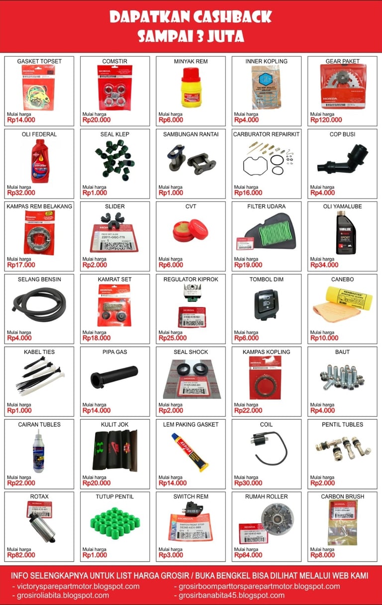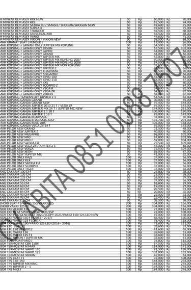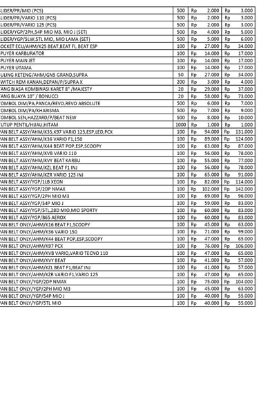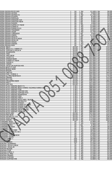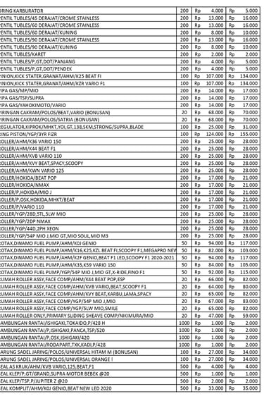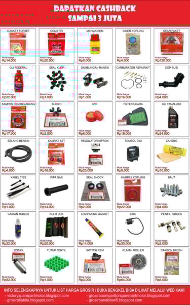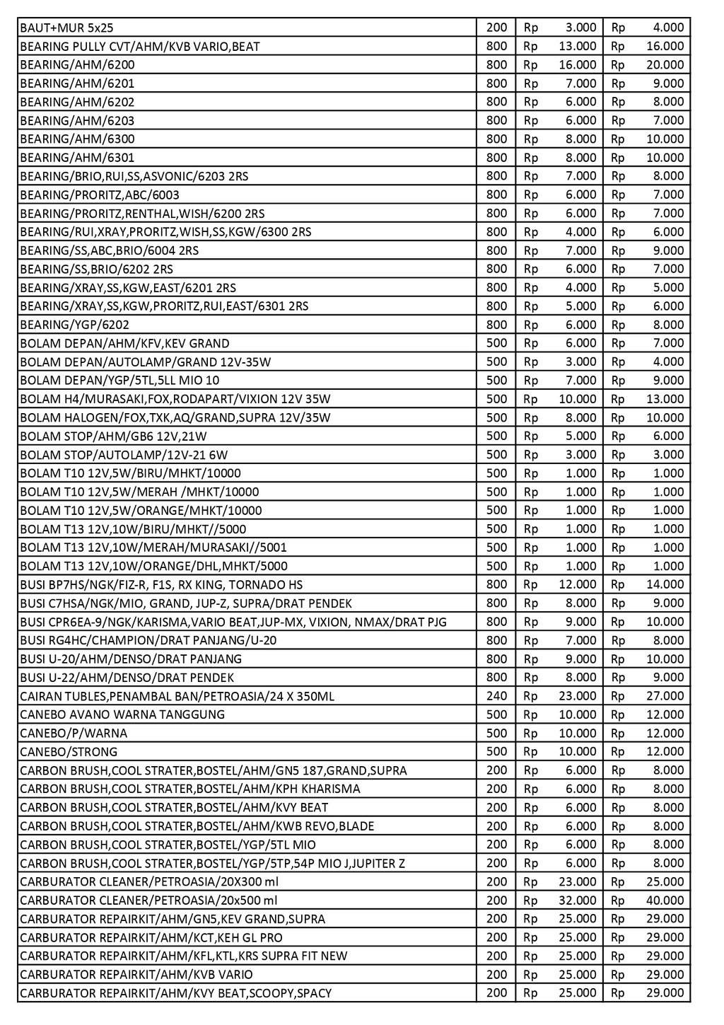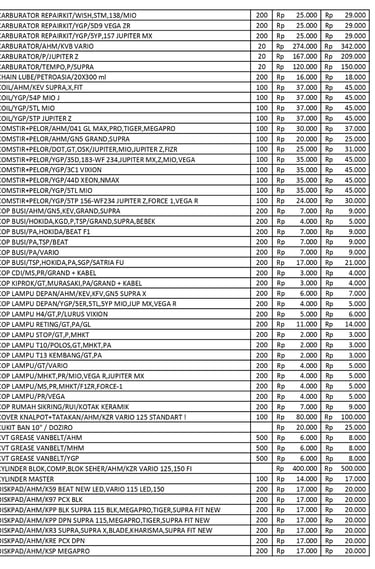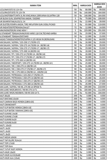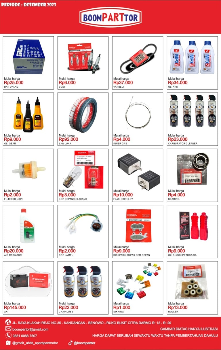 PRICELIST LENGKAP SPAREPART MOTOR, OLI, BAN BOOMPARTTOR