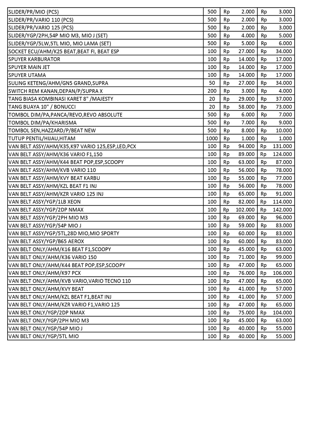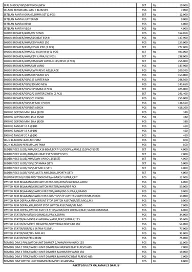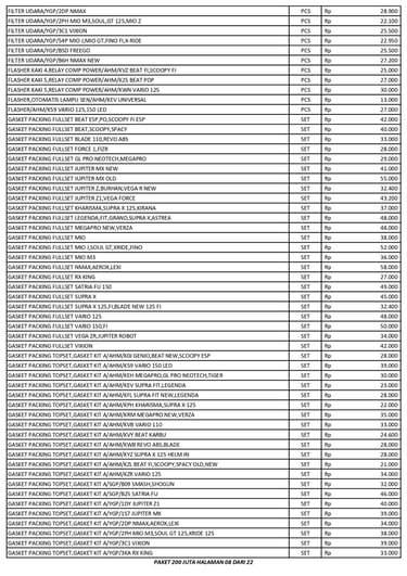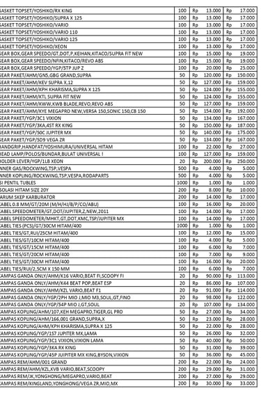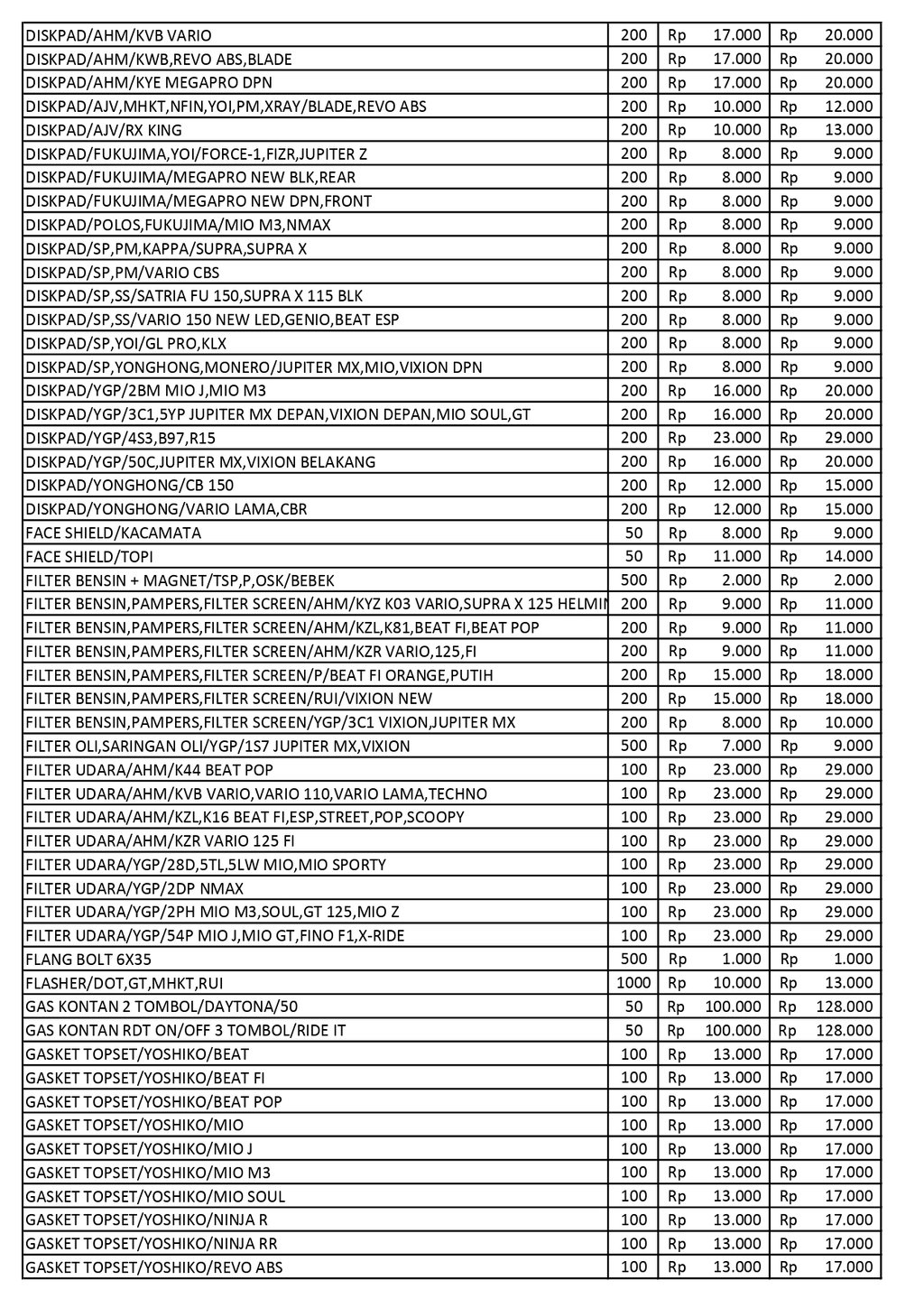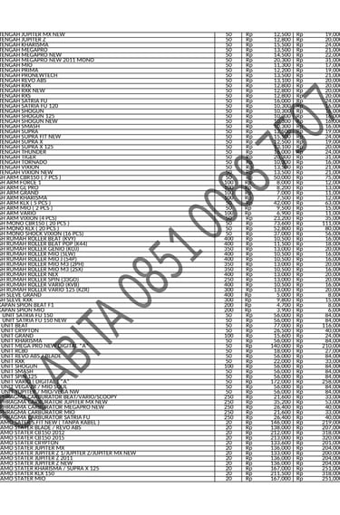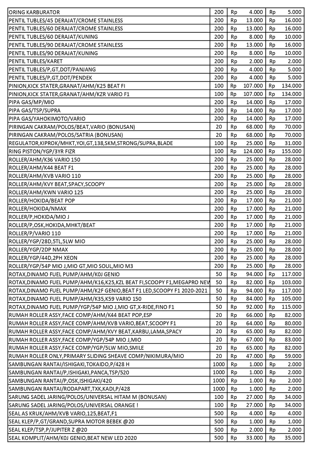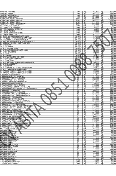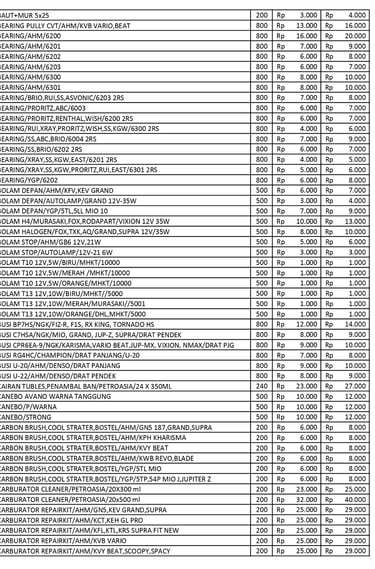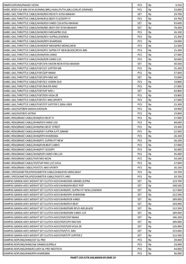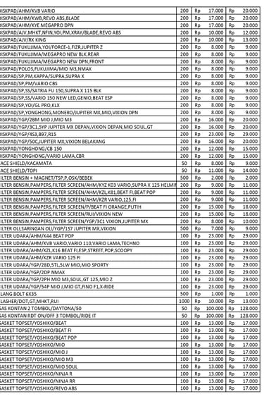 PRICELIST LENGKAP SPAREPART MOTOR, OLI, BAN BOOMPARTTOR