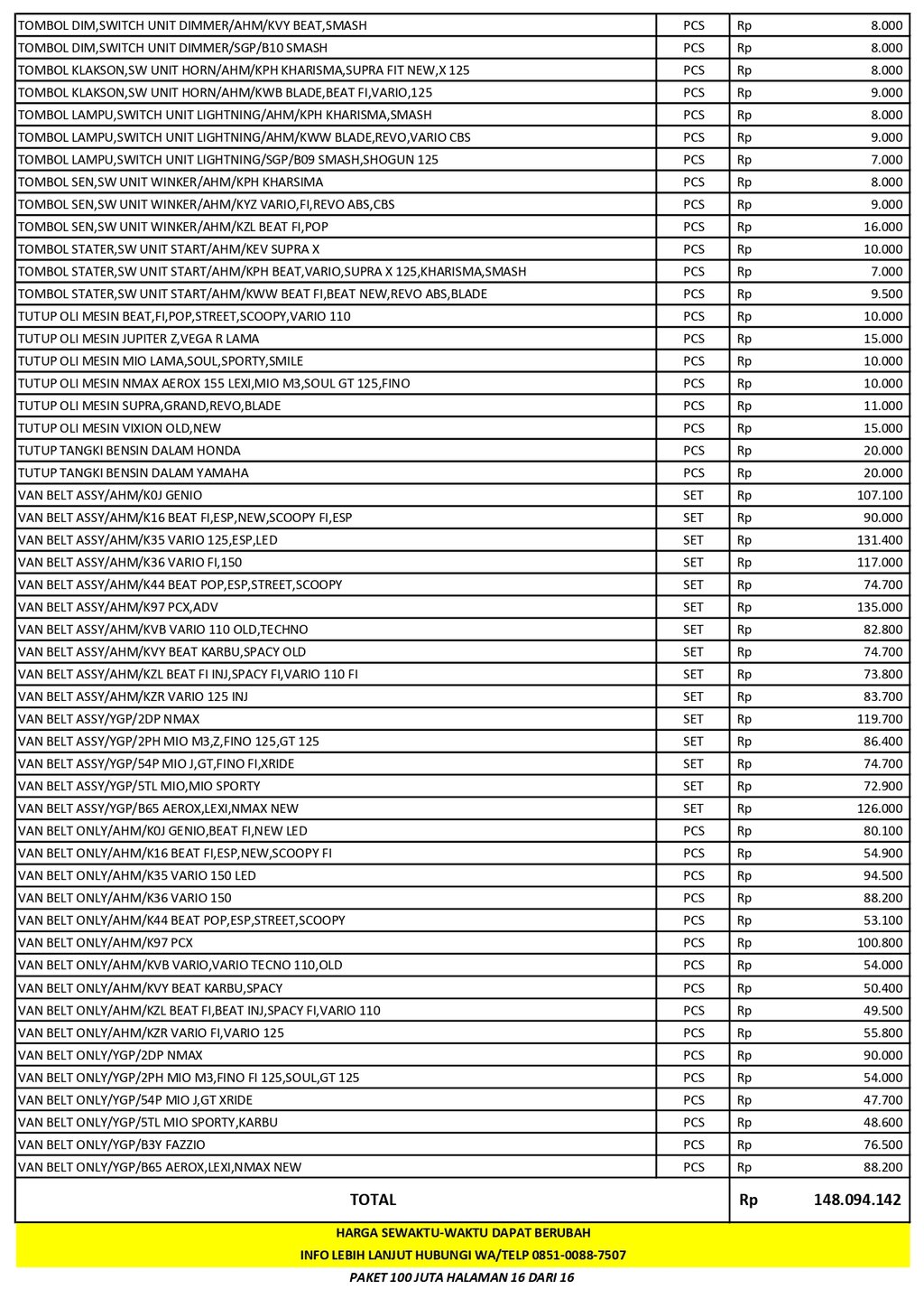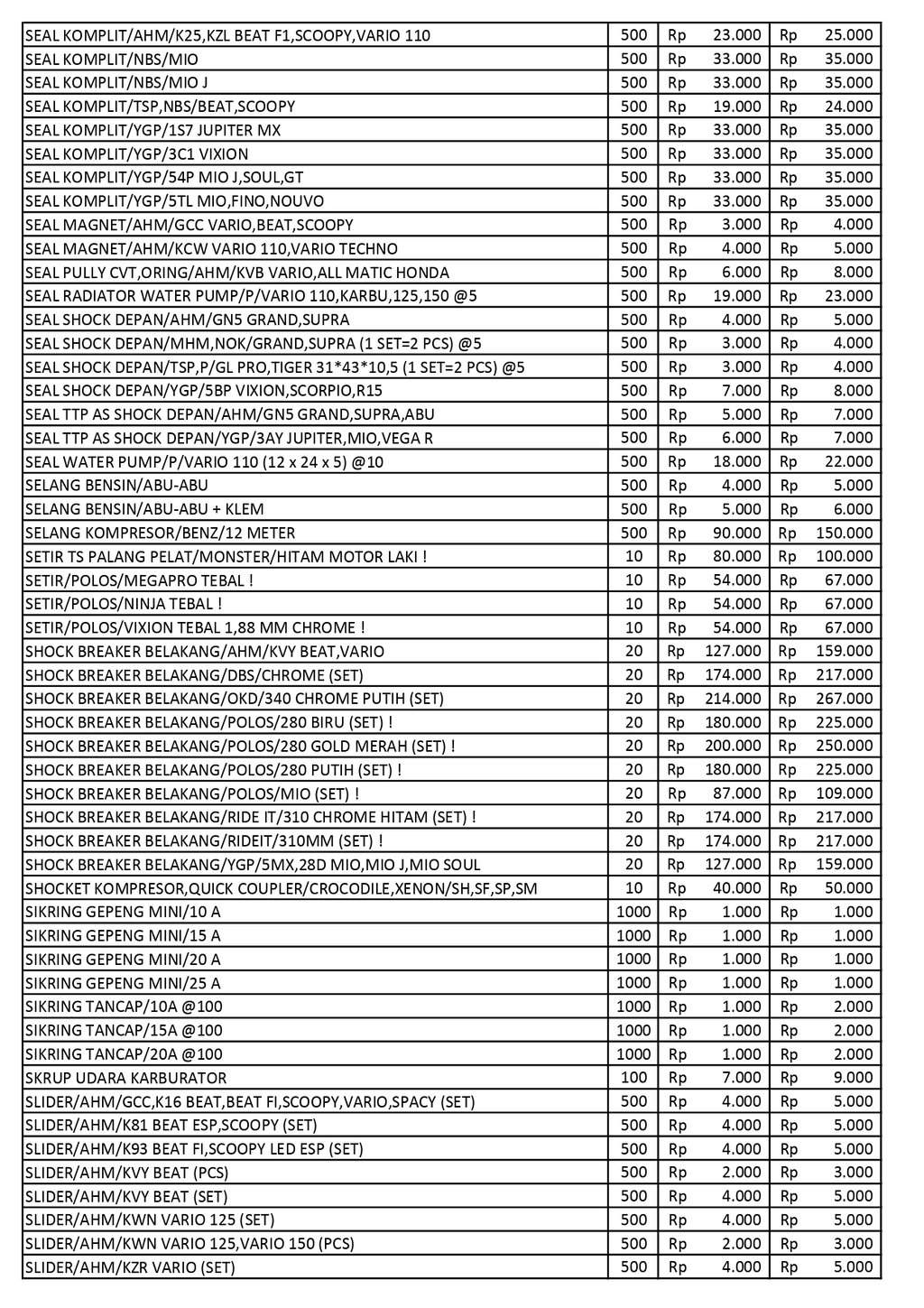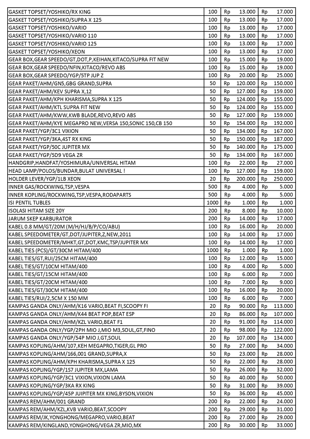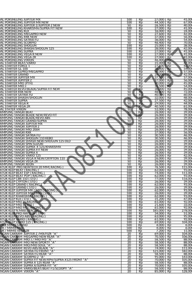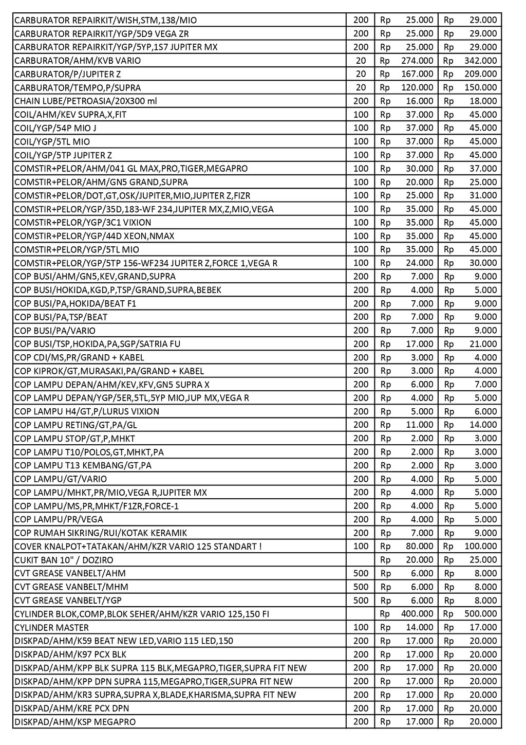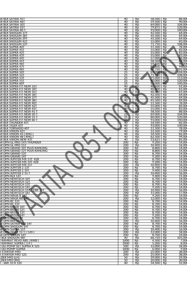 PRICELIST LENGKAP SPAREPART MOTOR, OLI, BAN BOOMPARTTOR
