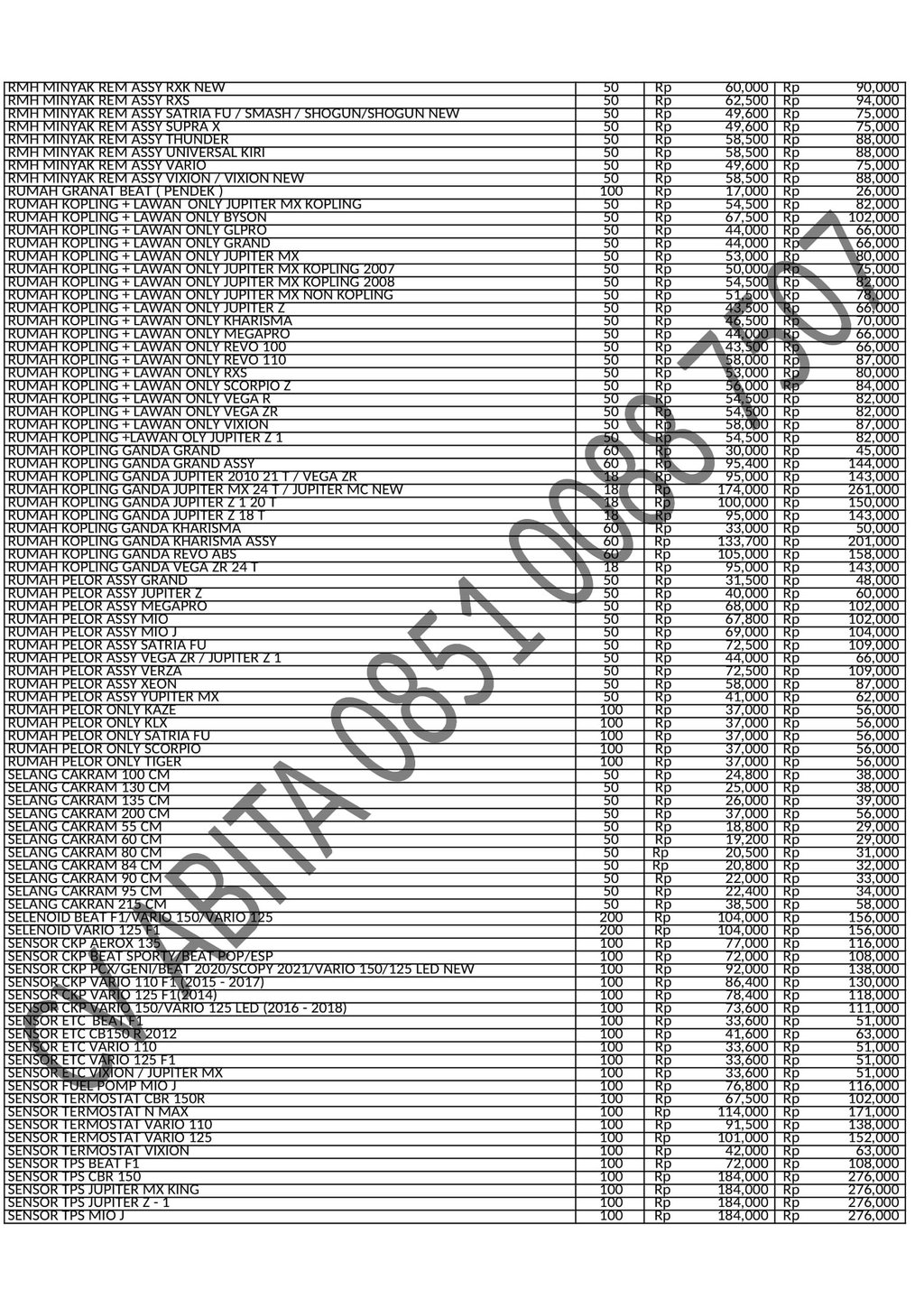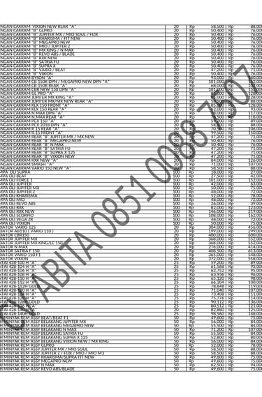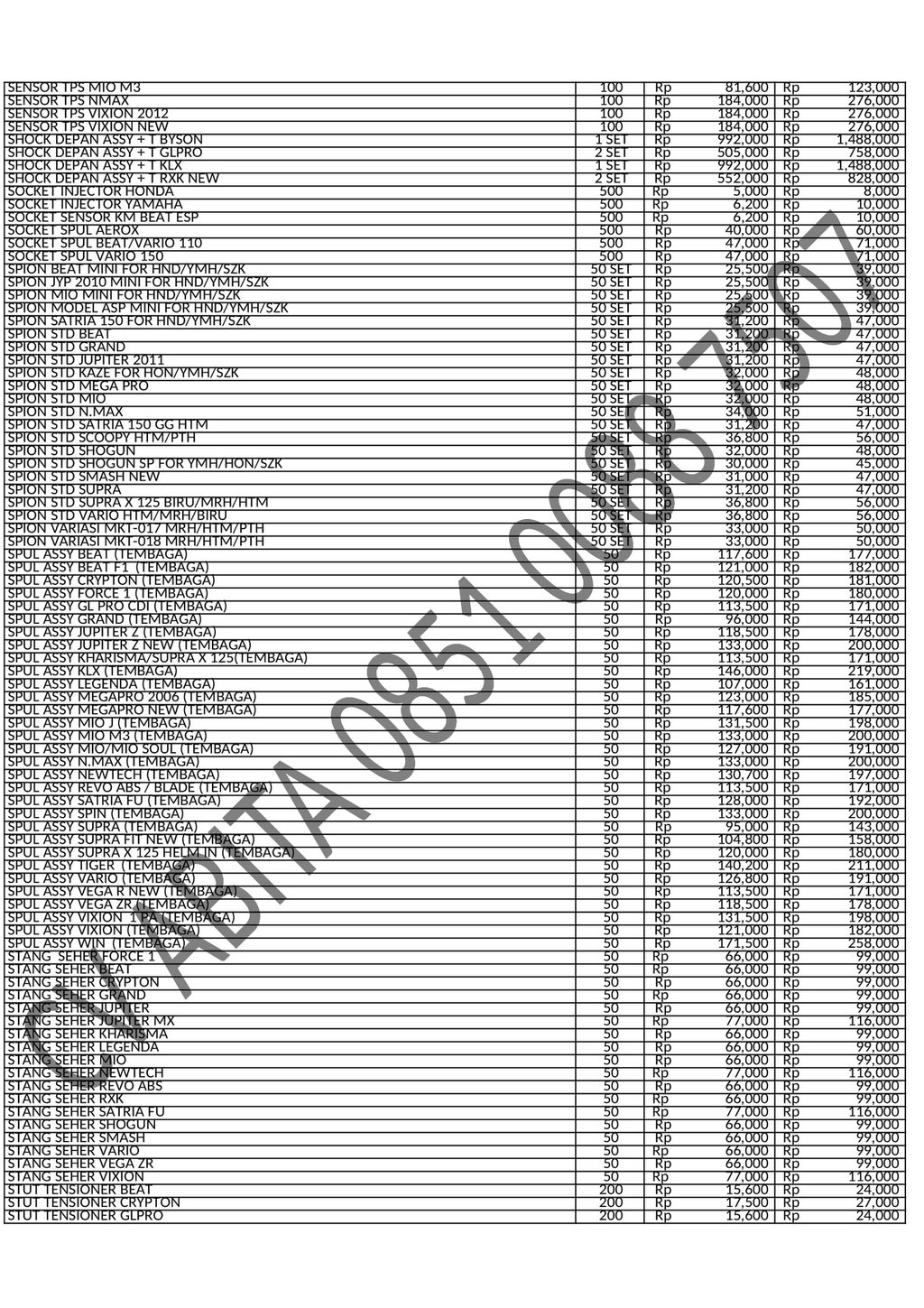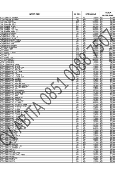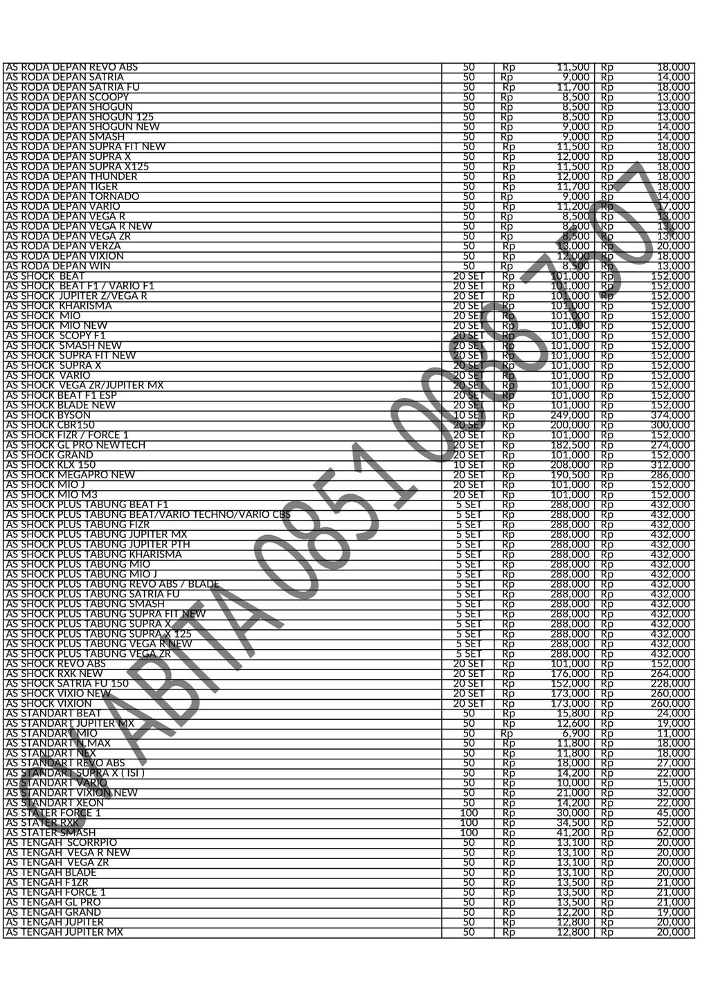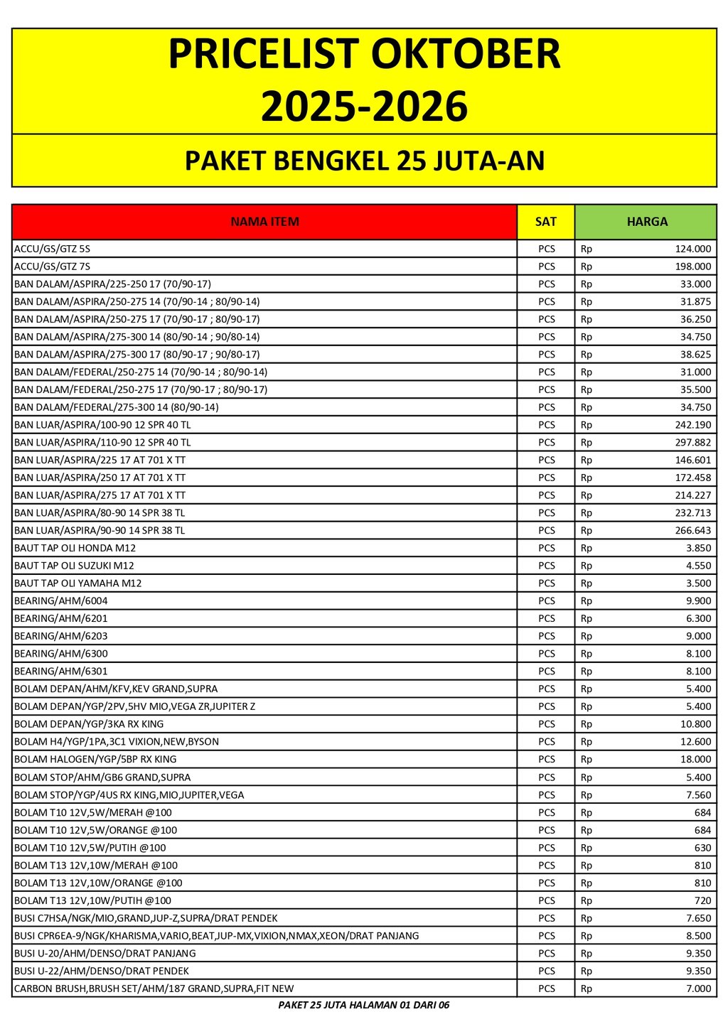 PRICELIST LENGKAP SPAREPART MOTOR, OLI, BAN BOOMPARTTOR