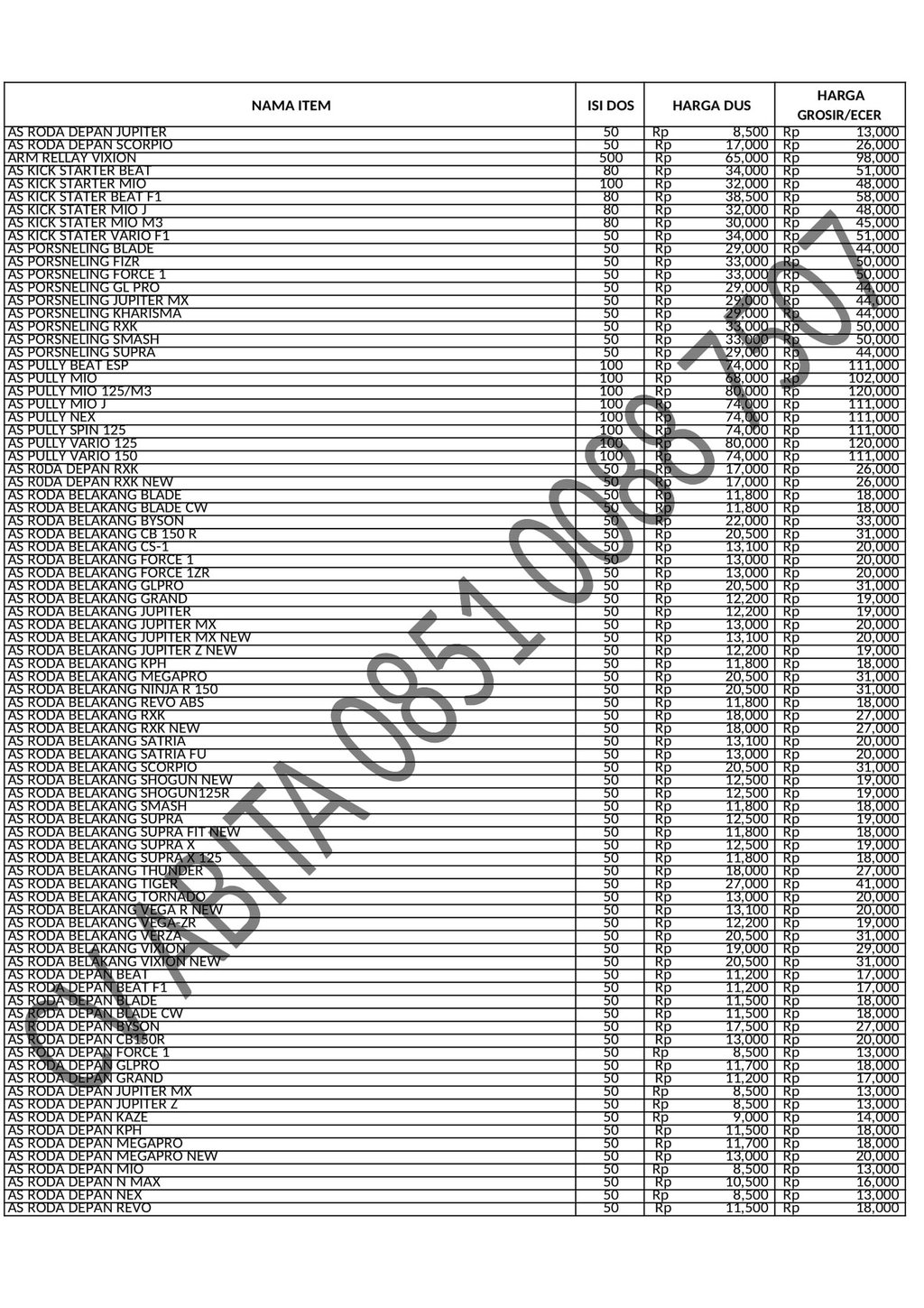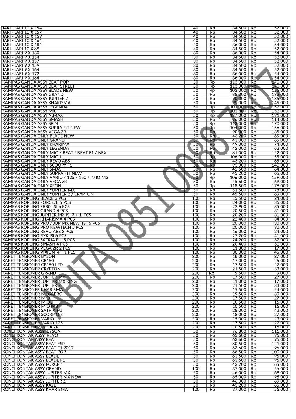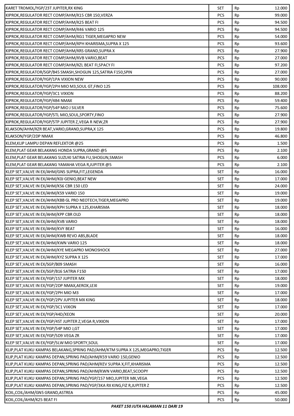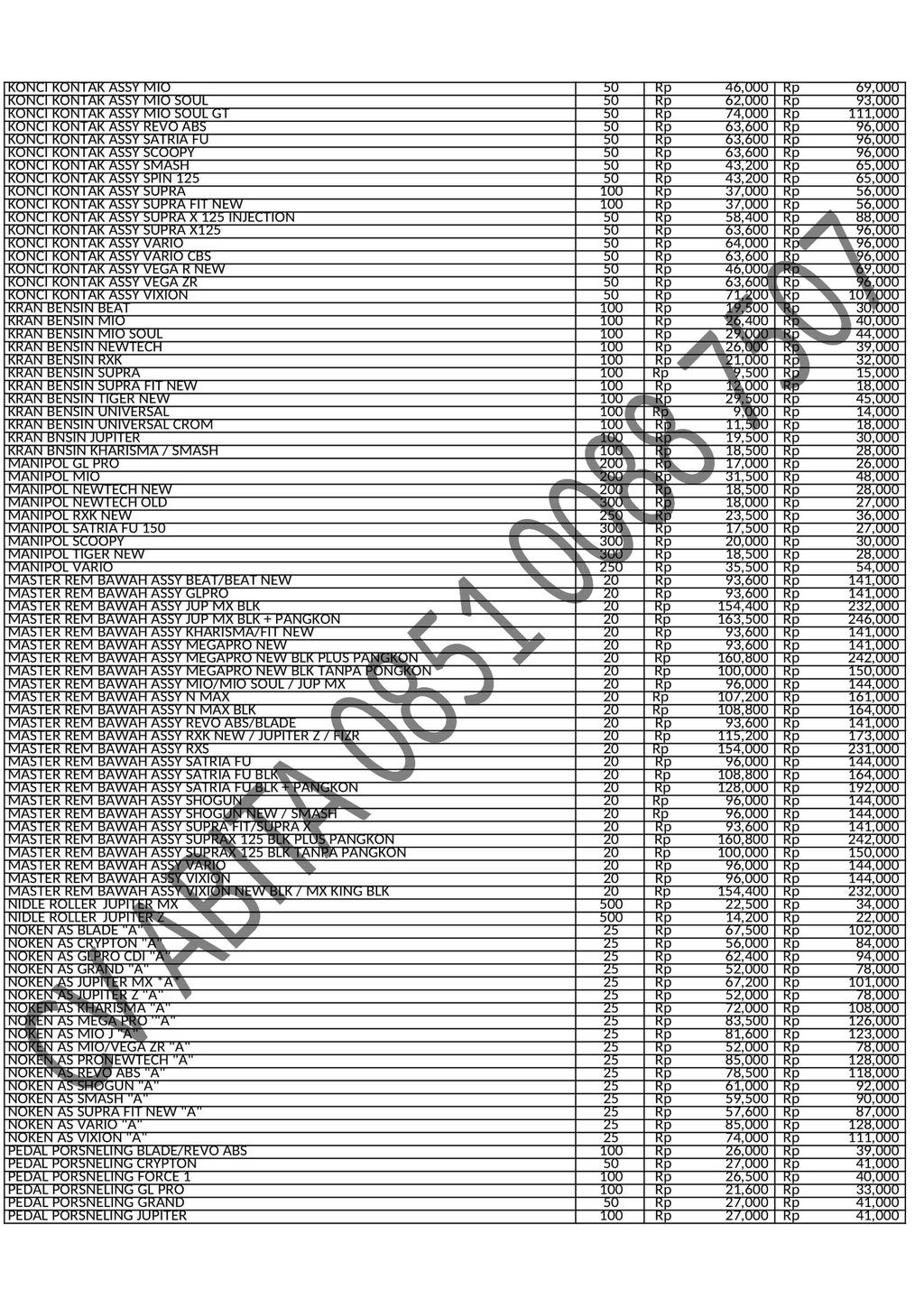 PRICELIST LENGKAP SPAREPART MOTOR, OLI, BAN BOOMPARTTOR