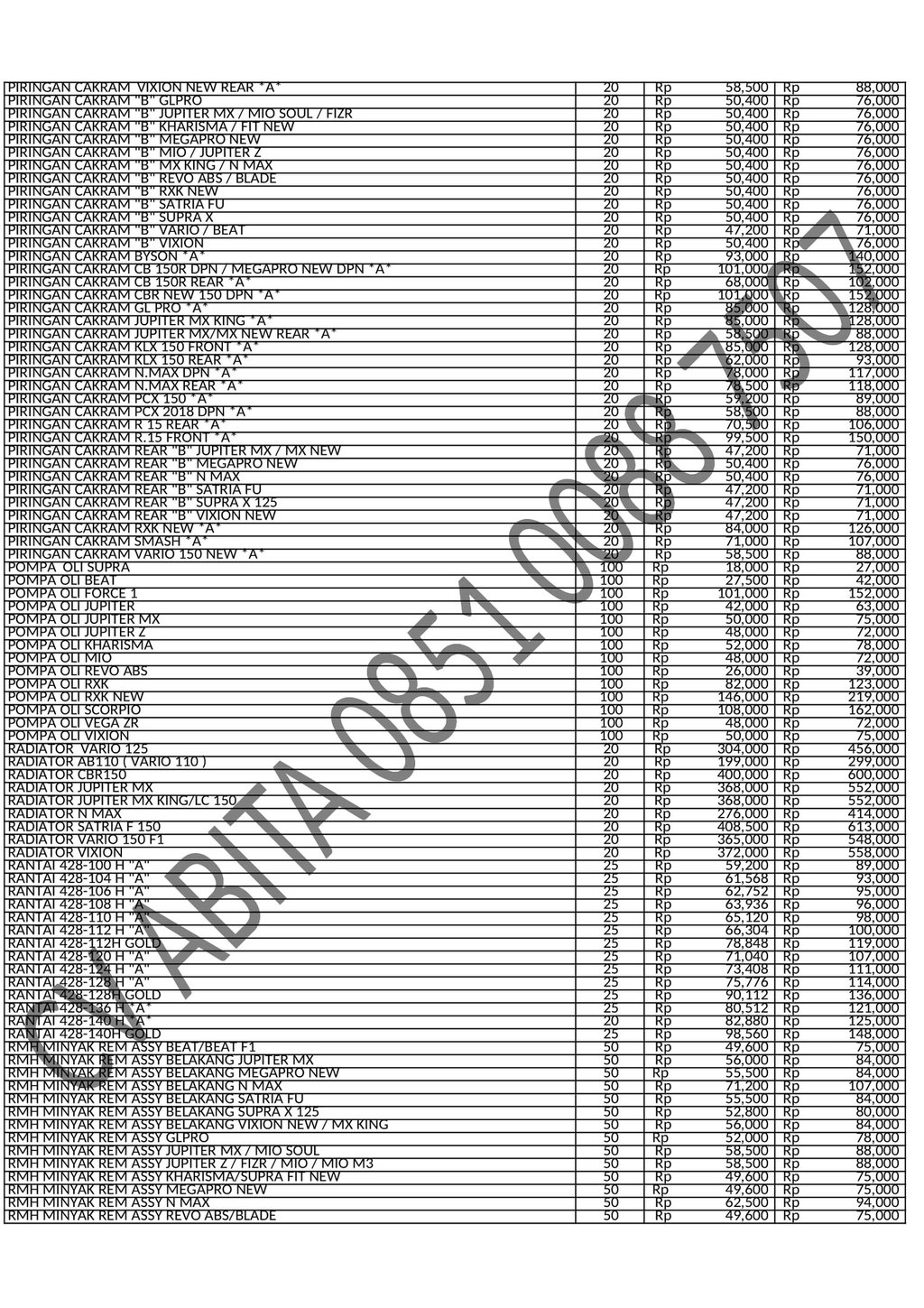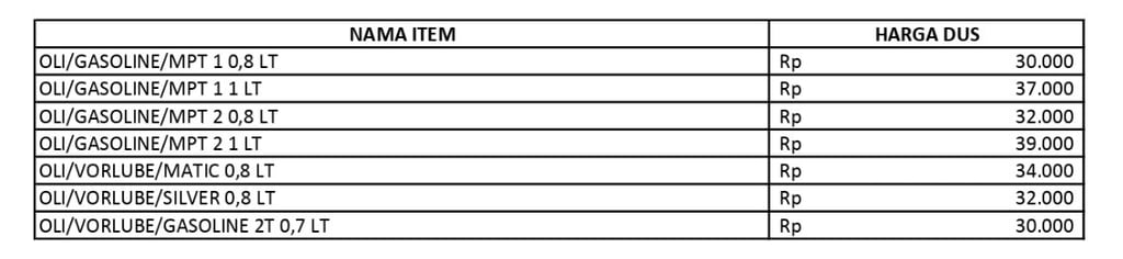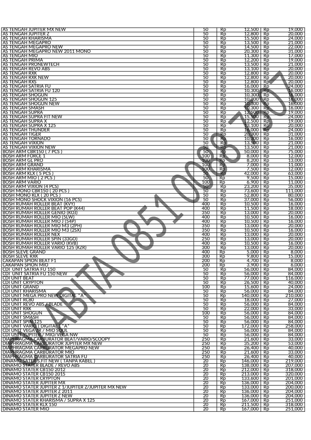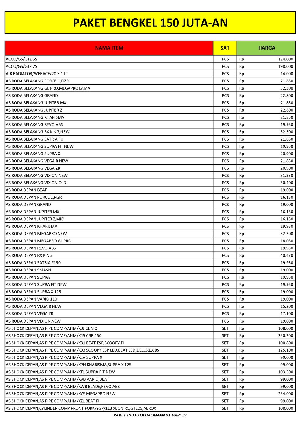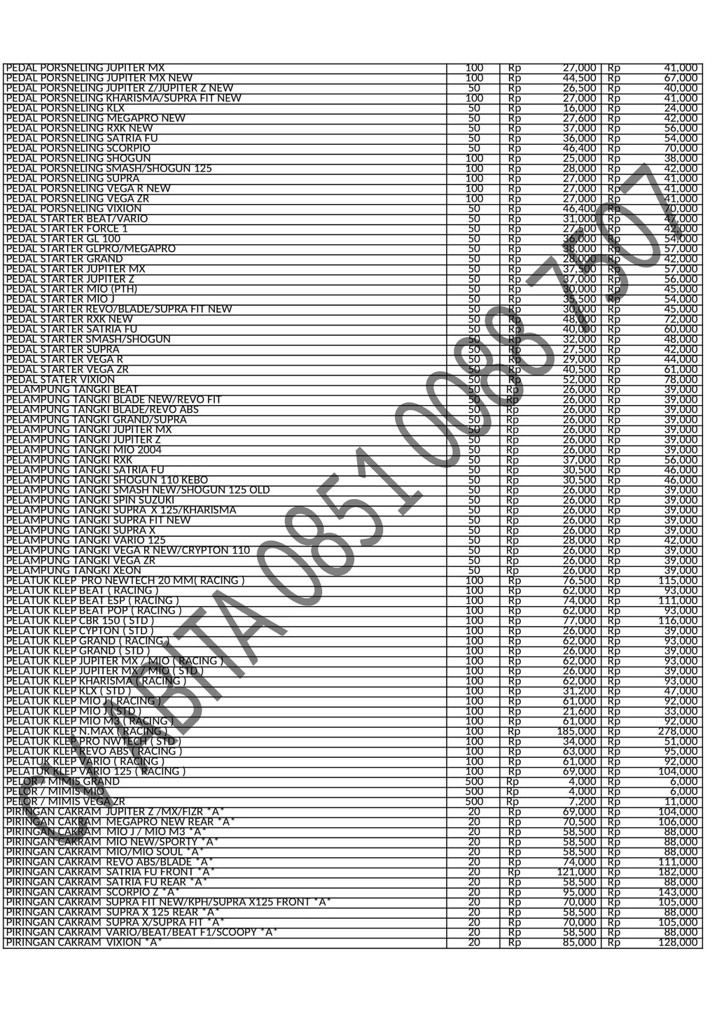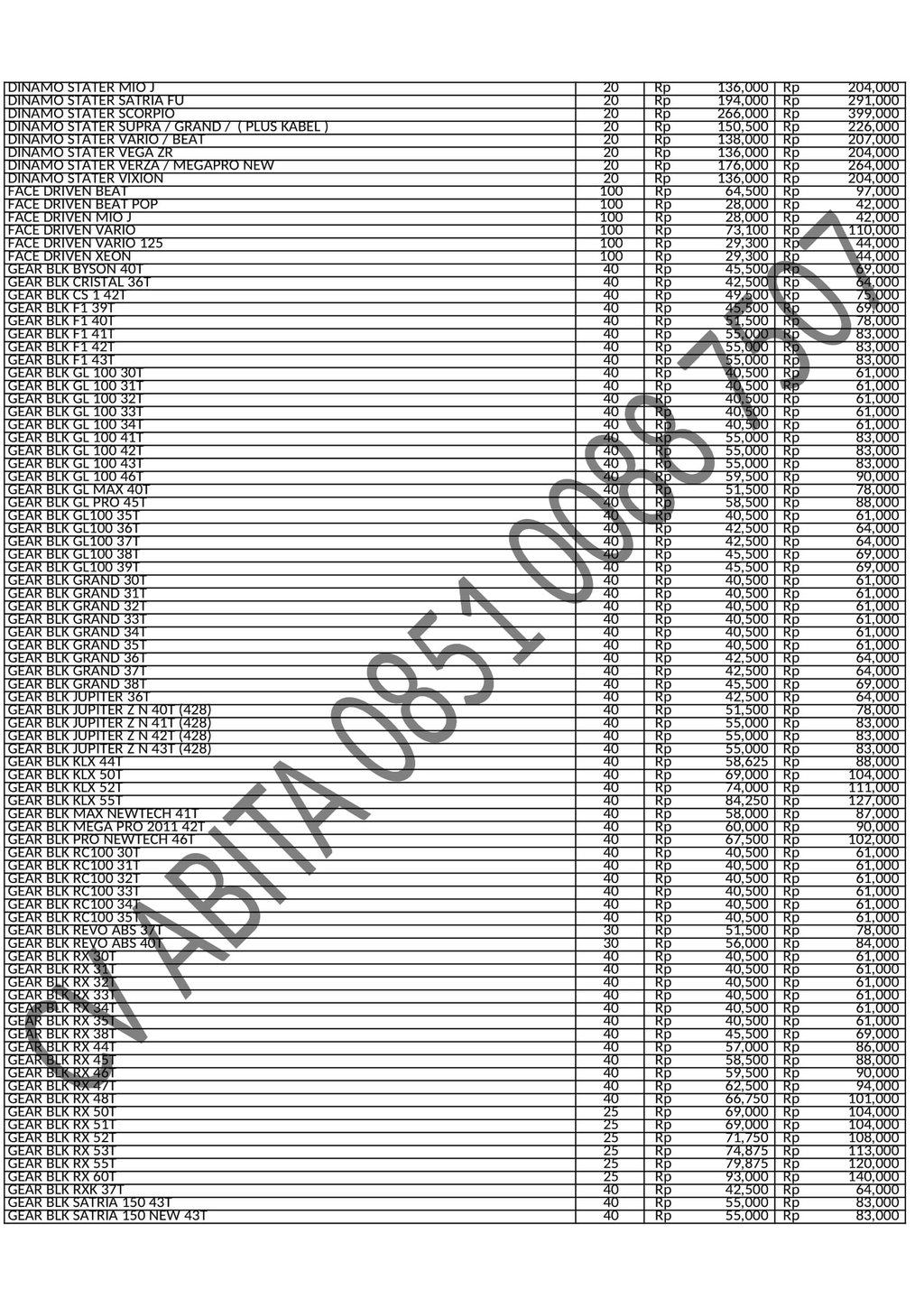 PRICELIST LENGKAP SPAREPART MOTOR, OLI, BAN BOOMPARTTOR