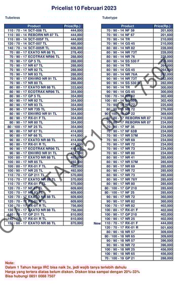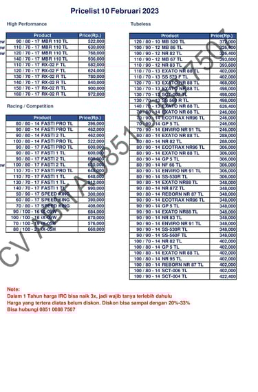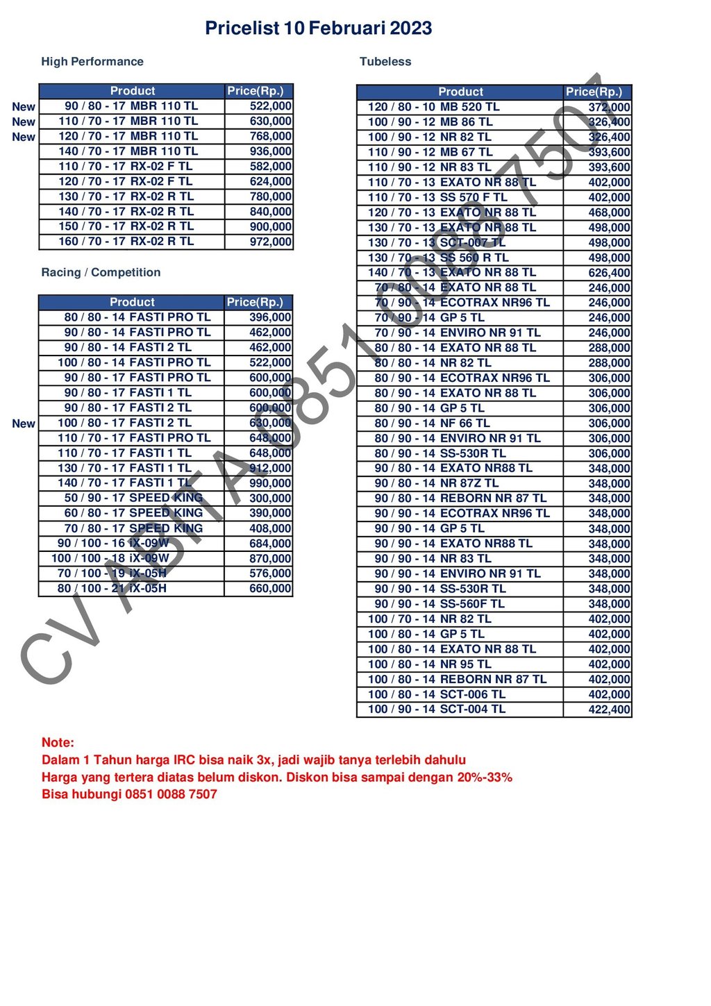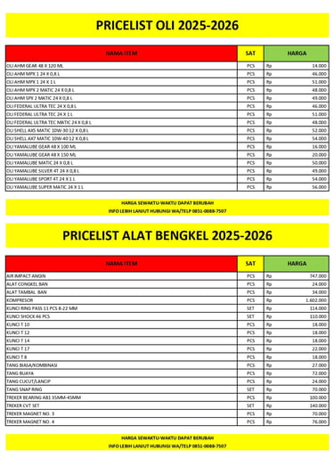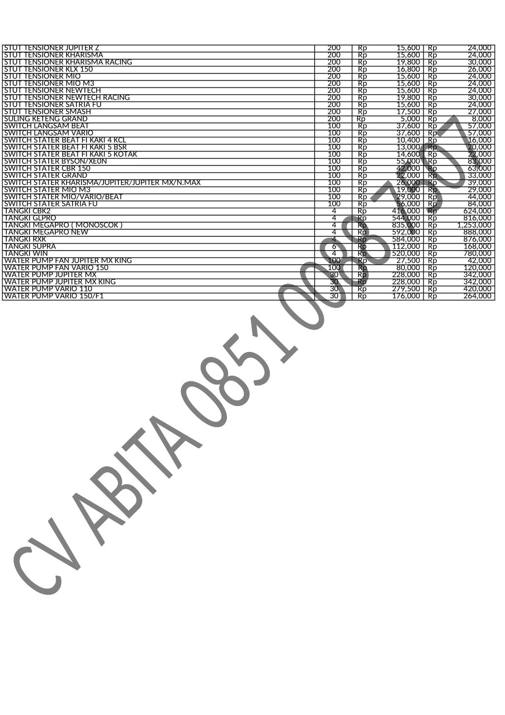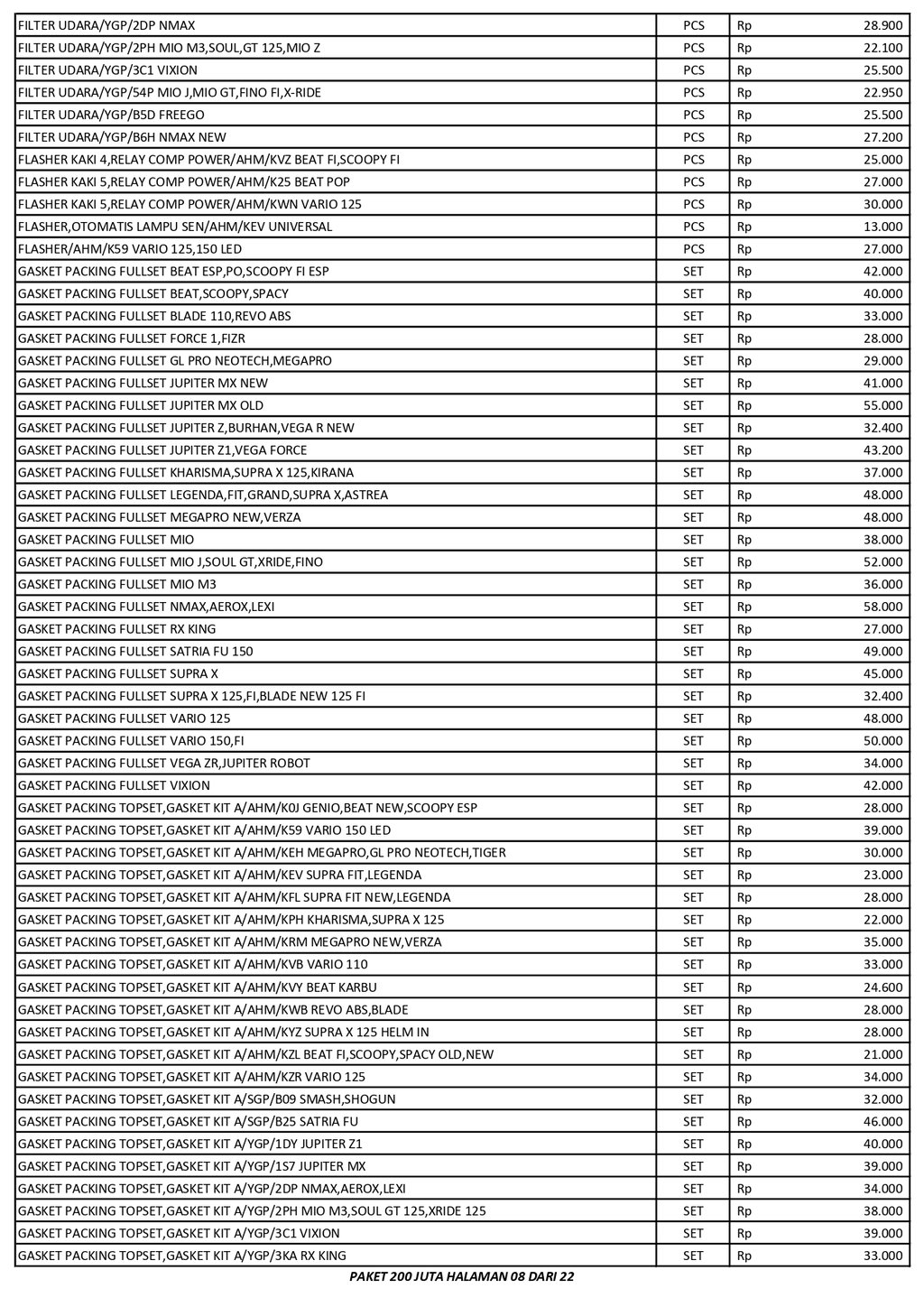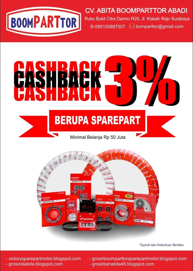 PRICELIST LENGKAP SPAREPART MOTOR, OLI, BAN BOOMPARTTOR